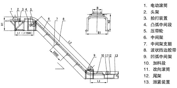 該系列產品主要用于散狀物料的大傾角連續(xù)輸送,采用具有波狀擋邊和橫隔板的輸送帶。輸送傾角為0-90°(70°以下最好),其特點為:用一臺設備在狹小的空間可完成水平傾斜輸送,具有通用帶式輸送機水平或小傾角輸送可靠高、節(jié)能和斗式提升物料可靠經濟的優(yōu)點。本系列產品廣泛用于煤炭、糧食、建材、化工、水電和冶金等部門,在環(huán)境溫度為-19℃-+40℃內輸送堆積密度為0.5-2.5t/m3的各種散裝物料,對于輸送有特殊要求的物料,如耐高溫或具有酸、堿性、油類物質、有機浴劑等成分的物料,須在訂貨時提出,采用相應材料的特殊擋邊輸送帶。